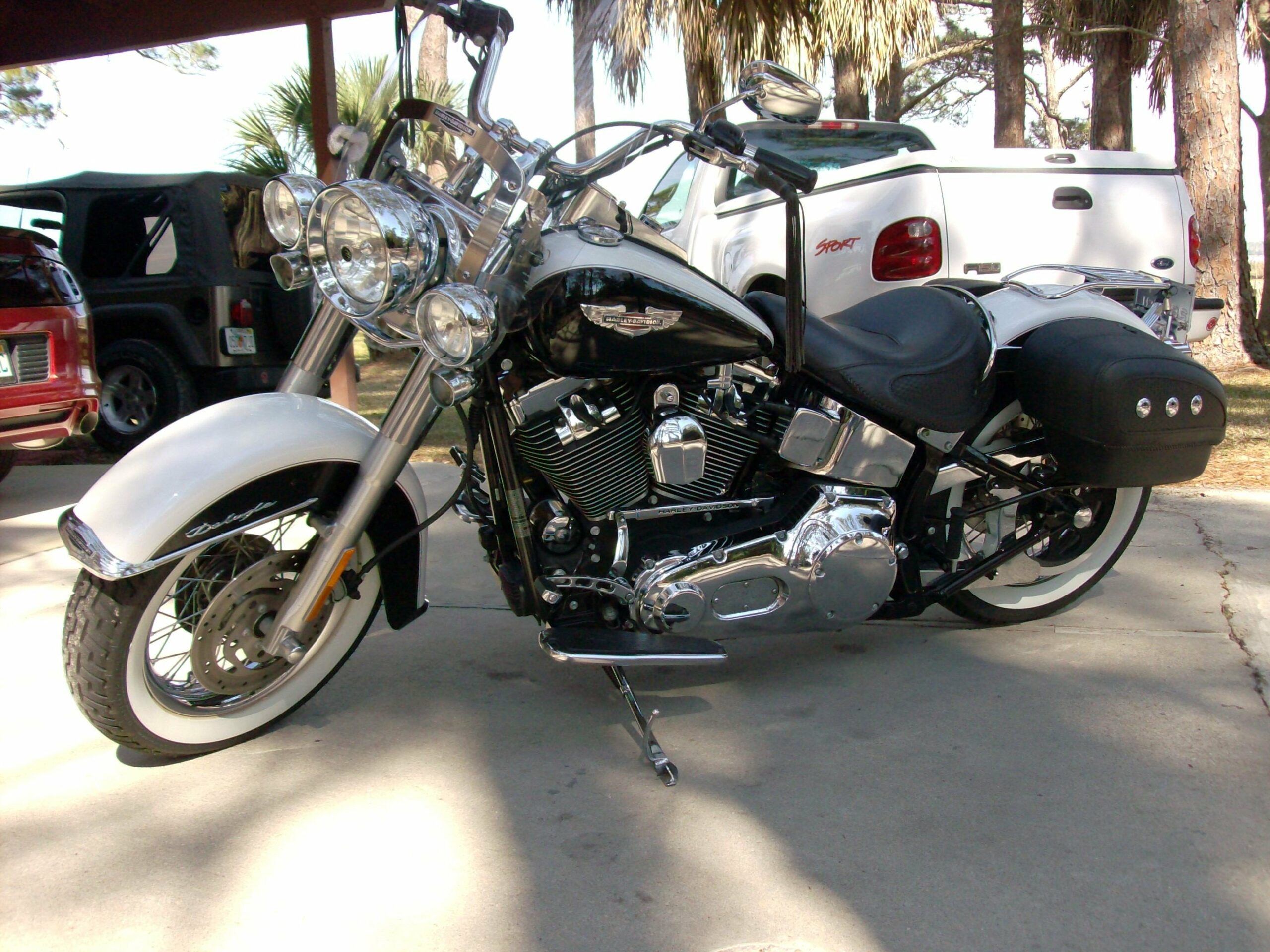 Black and white paint, Saddle bags, pavilion, sissy bar back with luggage rack and removal-able windshield.2005 Harley-Davidson Softail Deluxe