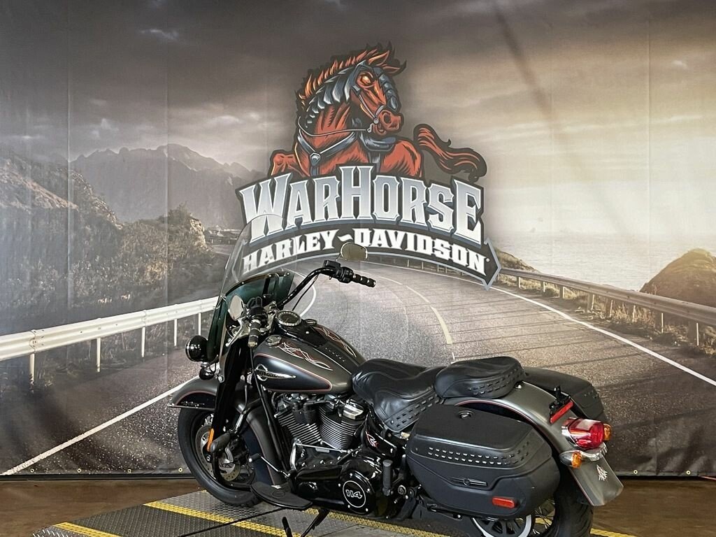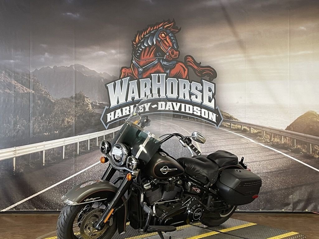 PREOWNED 2018 HERITAGE CLASSIC 114 IN INDUSTRIAL GRAY AND BLACK DENIM. INCLUDES PLUSH SEAT AND ONLY HAS 15655 MILES! CALL FOR MORE INFORMATION!2018 Harley-Davidson Softail Heritage Classic 114