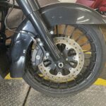 Wir vergessen nicht, die Bremsen zu überprüfen. Die Bremsscheiben dürfen nicht verkratzt oder verrostet sein. Wir achten darauf, dass die Bremsleitungen nicht rosten und dass der Füllstand des Bremsflüssigkeitsbehälters stimmt. Feuchte Bremsleitungen und zu wenig Bremsflüssigkeit sind Anzeichen für Undichtigkeiten, die sofort behoben werden sollten.