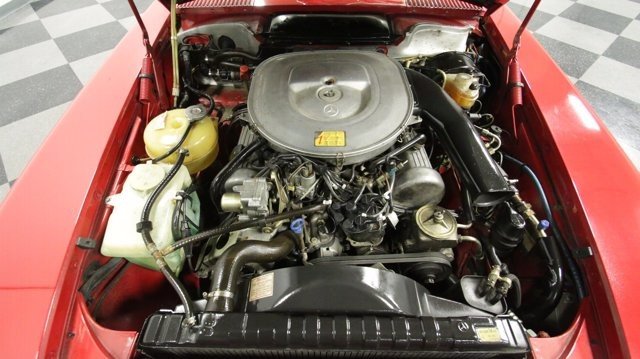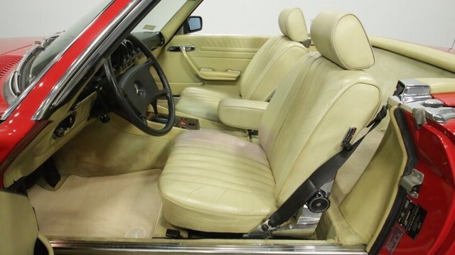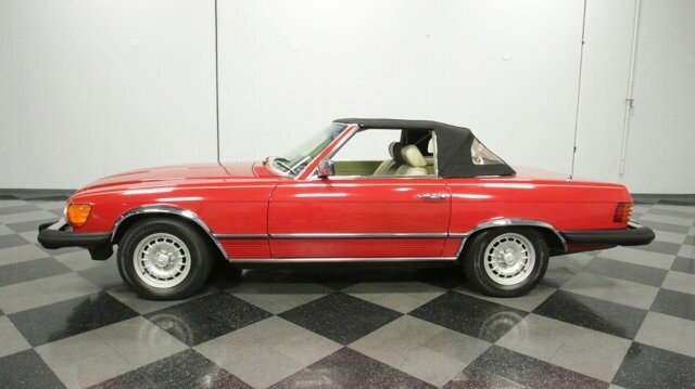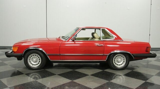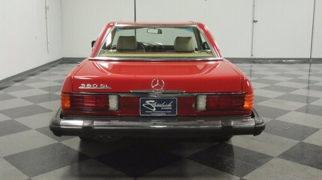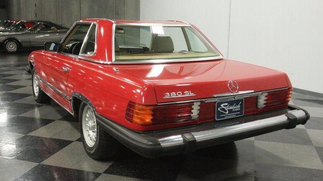 Timeless colors, a robust design, and the overall quality of a Mercedes – thats what attracts you to this 1983 Mercedes-Benz 380 SL even before you check out the desirable features, like both tops and the low mileage. The long hood, bright chrome bumpers, and iconic baroque alloy wheels give this convertible a bit more substance than the average drop-top. Its why the R107 Mercedes SL is often more desirable than even some classics that cost more. These were also built to have a little extra sophistication. Thats why they not only came with one of the best snug-fitting soft tops of its day, but also some lucky people opted for a color-matched hardtop like this one. Good seals, nice rubber on the bumpers, and clean body lines are all part of this cars look of proper care. So we believed the odometer reflects the full actual mileage because this has the look of a car used for seldom and responsible pleasure driving. The factory-correct Signal Red paint has a bright style and is smooth to the touch. In total, it makes for a finish on a classic thats also ready to hit the road on a whim. After all, you dont even need a sunny day when you have both a soft top and a color-matched hardtop on this coupe. The gold pinstripe has the look of premium on the red paint, and it also coordinates nicely with the golden tan interior. It makes for a nice total package, especially when youre open to the world. As a true premium Mercedes, it comes with all the features you want. This includes power windows, a wood-trimmed console, contoured high-back bucket seats, and provisions for factory air conditioning (it has