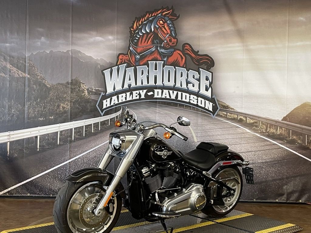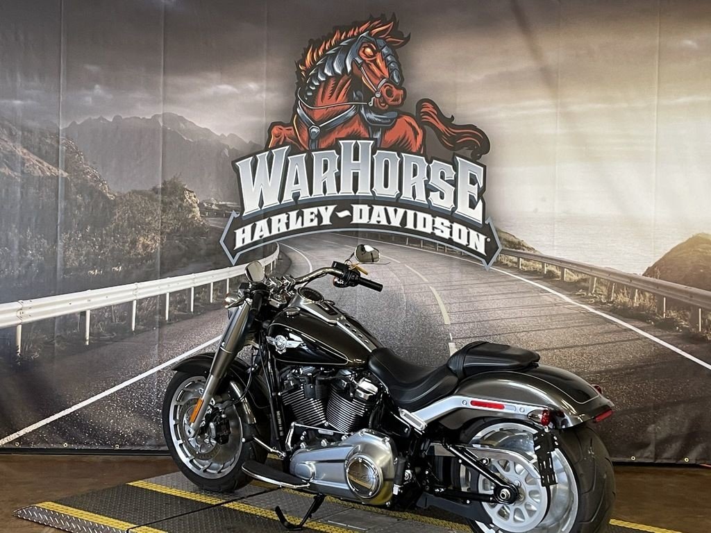 PRE-OWNED 2020 FAT BOY 114 IN RIVER ROCK GRAY AND VIVID BLACK, COMPLETELY STOCK WITH ONLY 843 MILES!