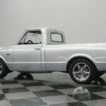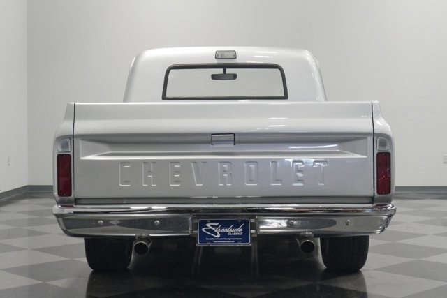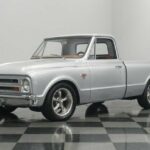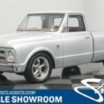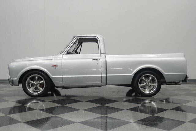 Theres serious style in this smooth-running 1967 Chevrolet C10 pickup. With the awesome exterior, custom comfy interior, an overdrive transmission, and powerful V8, its an awesome cruiser right now and has a ton of potential for the next level. This Chevys clean lines and standout shine are an instant draw. The timelessly attractive silver color displays with a deep gloss gives the classic body panels the look of precious metal. The bright presentation of the chrome bumpers, badging, and trim draws even more attention to the shine. And the wide polished dual exhaust tips and modern 18-inch Ridler wheels on a lowered suspension make for a solidly assertive look. It signals that this truck is not only a sight to behold but also a force to be reckoned with. The superior attitude continues inside with a stunning brown TMI upholstery upgrade for the seats, door panels, cup holder center console, and dash pad. The sculpted bucket seats feel both sporty and comfortable. In fact, everything feels just as good as it looks in this ride. And there are some nice touches for a little extra flair, from the Pontiac sports steering wheel to the dilled pedals. Youll even spot some provisions for nice features like an upgraded retro-style radio and a full air conditioning system. So you have the right fundamentals in place if you want to upgrade to some desirable cruiser features. With one glance under the hood, you can tell the engine has