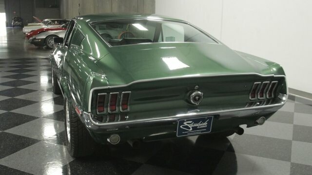 Mustang fans, let me be the first to assure you that any resemblance between this 1968 Ford Mustang Fastback and the famous one used by Steve McQueen in Bullitt is purely intentional. Complete with a powerful 351 cubic inch V8, an upgraded 5-speed gearbox, great options, and those famous Torque Thrust Old Style wheels, this car has the look that everyone loves. This Mustang is serious. Its nasty, its fast, and it pulls no punches in any regard. Its beautiful in every way that a car can be and the sheetmetal looks stretched over the frame so tightly that you know theres not an ounce of fat on it anywhere. And thats a good thing because dark paint like the Highland Green keeps no secrets and the sheetmetal on this car is very straight and super sharp. It had some surgery during its restoration, but it was done right, with new sheetmetal rear quarters and an entire Dynacorn one-piece floorpan seamlessly integrated into the original design in such a way that even experts cant spot the work outside. In the classic car game, you get what you pay for, and its no doubt this Mustang cost a pretty penny to execute and we commend the builders on a job well done. Doors fit right, the hood sits flush, and the deck lid blends seamlessly into the fastback profile to give it a beautiful, uninterrupted curve. If a top-end, driver-grade Mustang with a slick paint job is what youre after, then you cant do much better than this, and if youd like to show it this Fastback can hang with the best of them. Its got some bright trim, just enough to highlight the fastbacks most delicious details, but the grille has