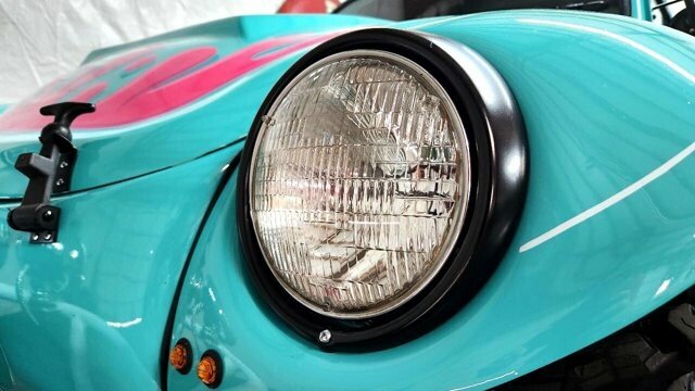Fresh Pan-Off Restoration with Body Lift, Fiberglass Front Nose, New Tropical Turquoise, Paint Hand Painted Graphics by Igor of Virginia Beach, VA Shark Fin Oil Cooler, Aluminum Dash, Custom Baja Side Mirrors, Chrome Louvered Firewall, KC Fog Lights, LED Turn Signals, New Dual Port Supercharged 1600cc Engine, Stinger Exhaust, Berrys Blower with Side Draft Carburetor, New 31x10R15 Tires, Adjustable Shocks in the Front & Rear, Aluminum Door Panels, Custom, Steering Wheel, EMPI Shifter, Vintage JDM AME Mesh Rims. We have