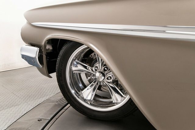 Alloways Hot Rod Built Impala Resto-mod 502 V8 700R4 4-speed PS PB A/C Leather /// An all-American cherry that was ripe for customization, this superstar Impala was subjected to a systematic, no-expense-spared build that was completed by the artists at Louisville, Tennessees Alloways Hot Rod Shop. Reflections are pure class thanks to a slick combination of Impala Desert Beige and Bel Air India Ivory two-stage. And today, this sweet Chevy cruises the scene as a lights-out custom thats