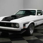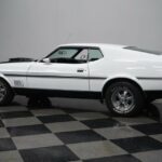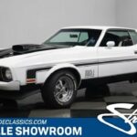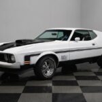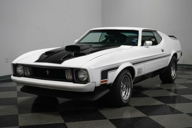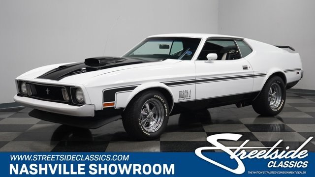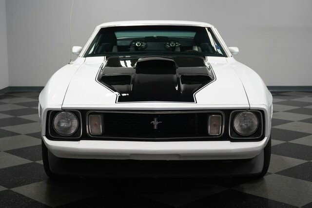 This 1973 Ford Mustang Mach 1 has a terrific color combo inside and out. Plus, with everything from an upgraded stereo to a growling V8, you have the look and sound you want from an aggressive pony car like this. The white paint gets this noticed. After all, its a timelessly attractive color, especially when this upgraded paint has a vibrant finish. And its a tasteful choice that provides the best contrast to all the aggressive Mach 1 pieces presented in black. It starts with the NACA duct ram air hood that really brings attention to the well-coordinated blackout. This darkness continues on the large front splitter, dark grille, rear spoiler, and the Mach 1s famous hockey stripe package. This one even takes the sporty style up a notch with custom details, like the large hood scoop and those polished Cragar SS wheels. The color theme switches on the inside where you have a full black interior, and the white returns as an accent on the high-back bucket seats. These later first-gen cars were built with added comfort in mind, especially the premium Mach 1. So you have factory features like the center console w/armrest, wood-like trim, and even provisions for air conditioning (it will need servicing to blow cold again.) And because they also wanted to make sure this is a comfortable classic for modern times, you also have worthwhile upgrades like an Alpine AM/FM/CD stereo and an upgraded subwoofer speaker system. Under this hood is Fords mighty 351 cubic-inch V8. Its the correct displacement for this H-code coupe, but you can also see it has