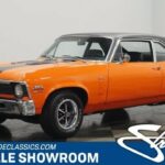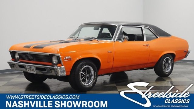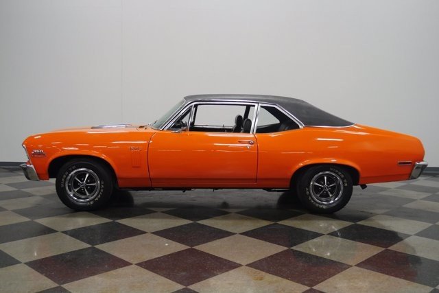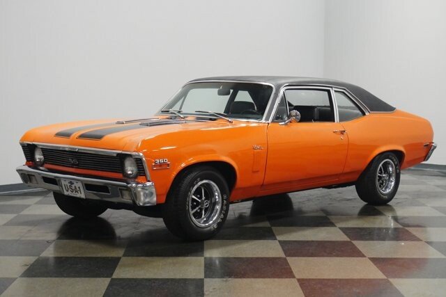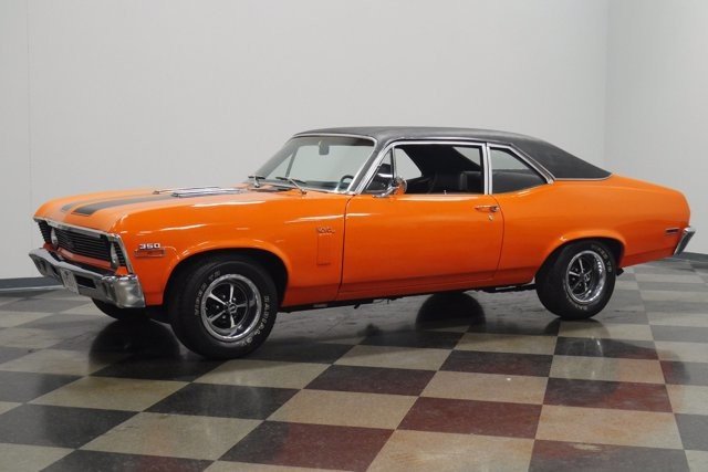 An attractive paint package, a strong small block, and the right extras all come together on this 1970 Chevrolet Nova SS Tribute. It makes for the kind of a classic that was made for a cruise-in. Orange is a great color on a car like this. Its a later respray that uses its bright style and high gloss to showcase the well-fitting panels. So you really get to the curves that make this gen Nova so desirable. They were also thoughtful in the details. The racing stripes are painted on instead of decals, and the vinyl top has the taut fit of a newer investment. This darkness looks great against the orange, and so do the other Super Sport upgrades like the blackout grille, rear panel, hood vents, and mag wheels. The black exterior accents of the exterior go nicely with the full black interior. It has a good look with a smooth dash, good carpeting, and nice upholstery. There might be some details that you may want to update like the door panels or the radio, but overall, the appeal here is how the car focuses on the driver. You have upgrades borrowed from the first-gen Camaro like the center console with auxiliary readouts and the front bucket seat with headrests. This is even one of the rare Novas with the horizon tach in the gauges next to the ultra-wide speedometer. The slick black nature of the engine bays inner walls instantly funnels all your attention to the bright V8 sitting in the middle. More than just a tidy and shiny setup, this is a fresher 350 cubic-inch crate motor. It has