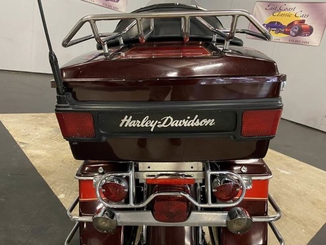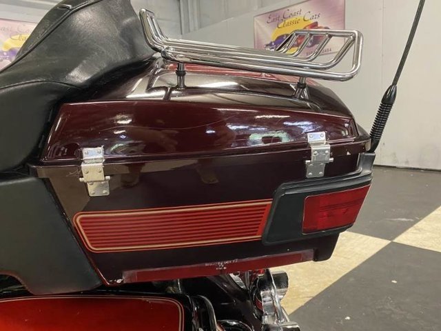 Stk#96 1990 Harley Davidson Electric Glide Ultra Classic 68,000 Plus original miles. Original owners manual and HD tool kit. This bike is loaded with chrome. ATV and motorcycle jack, battery tender, hand air pump for fork and shocks. Bike cover included. Painted Burgundy and Black, dual front disc and single disc in rear. Looks good. Rider Saddle with back support and passenger integrated seat into rear trunk. Antenna, Harley Davidson stereo with back speakers. Running boards. Nice. 80 cubic inch, top end done at about 61,000 miles. Mild cam, K&N air filter, new SS oil lines, carb rebuild. Oil Changed. Runs and handles good.