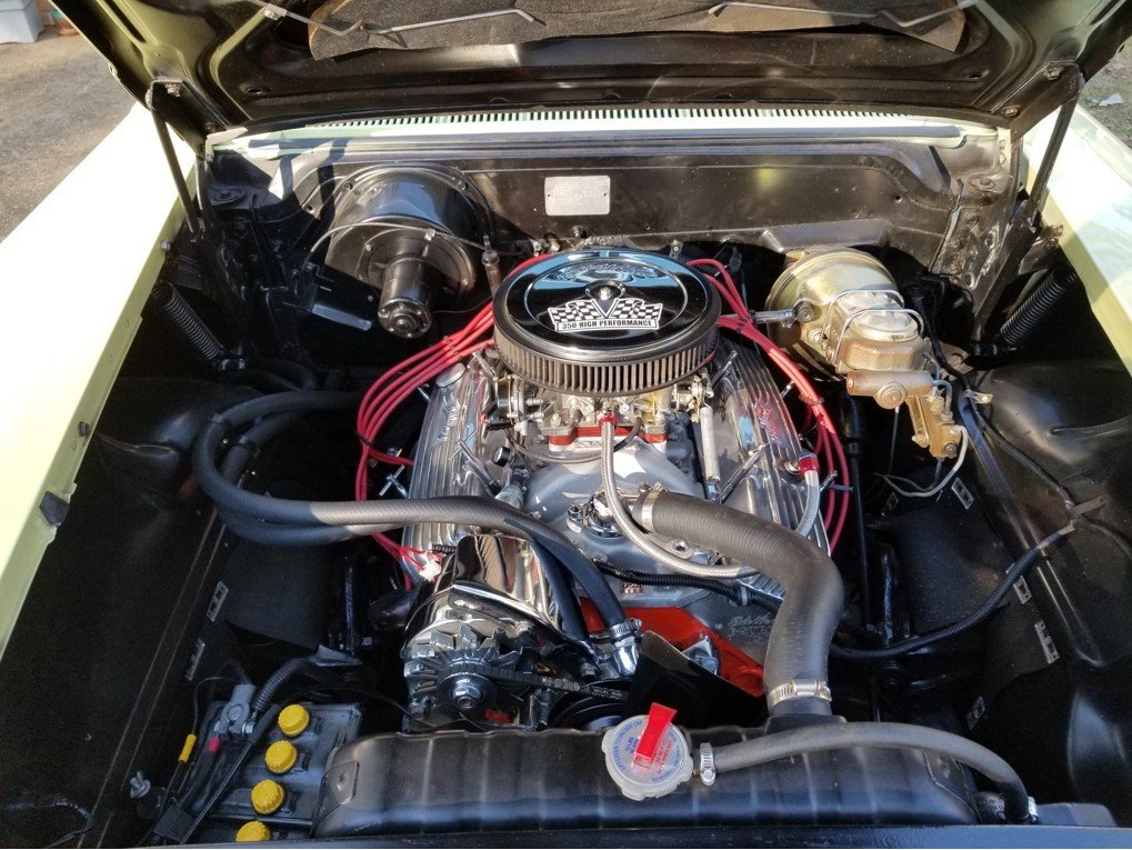 Up for sale is a 1958 Chevrolet. My bill of sale calls it a Bel-air, but the pictures of the body side mouldings depict a Biscayne model. I have registered it as a Bel-Air. The outside color is called Colonial Crème, which was a factory color option for the 58 Chevy line- up. The car was originally blue, I liked the Colonial Crème and decided to leave it alone. The engine is a rebuilt Chevy SB 350 with Edelbrock aluminum heads, intake, valve covers, camshaft, and 600 cfm carb.Other non-Edelbrock components include stainless steel headers, roller rockers, timing chain. The engine machine work was performed at a local shop that specializes in building racing engines. The transmission is a turbo 350 with recent filter and fluid change. The exhaust is dual with cutouts that have