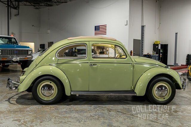Welcome back to the amazing and ever-changing inventory of Collectible Motorcar of Atlanta. Today we are proud to present you this amazing 1959 Volkswagen Beetle Sunroof Sedan in a beautiful light green over tan interior with a matching tan top. The paint on this beetle has