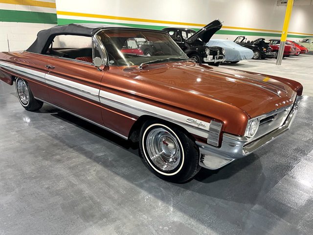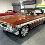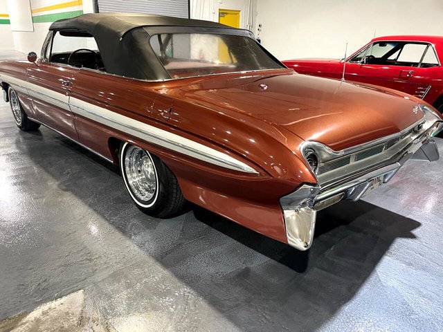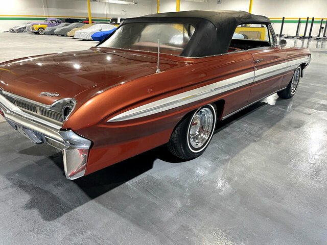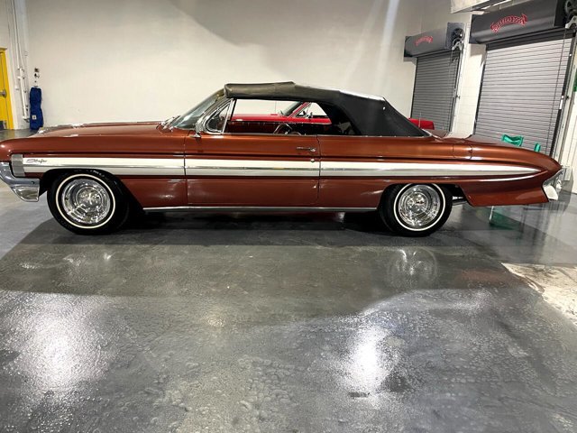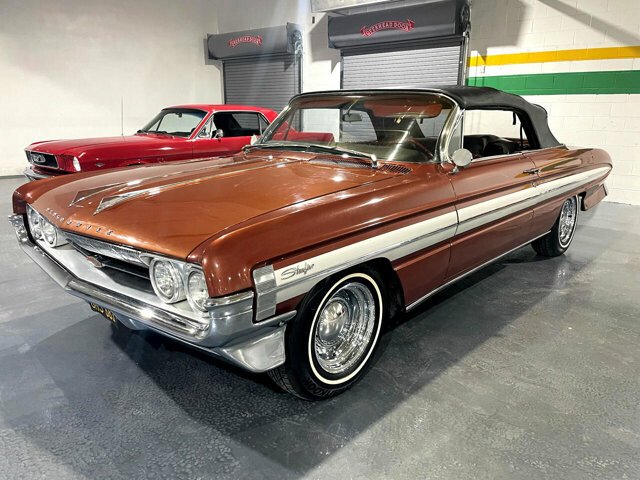 We are very pleased to present this 1961 Oldsmobiile Starfire Convertible. 1961 was the year Oldmobile introduced the Starfire as a stand-alone model after being part of the 98 line. The smaller 88 frame paired with the 394 V/8 engine and 4-barrel Rochester carburetor have led many to call it Oldsmobiles first entry into muscle cars. The first year they had a limited production run of 7800 vehicles- all convertibles. This particular model has what is believed to be 47,150 original miles. It started life wrapped in Autumn Mist paint, but the former owner had it repainted its current color. The current paint is of driver quality. The interior is believed to be original and is in very good condition. Mechanically the engine and transmission work well, many of the suspension parts have