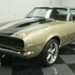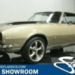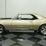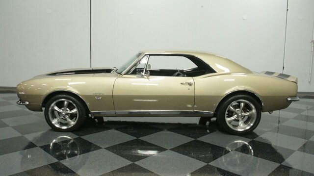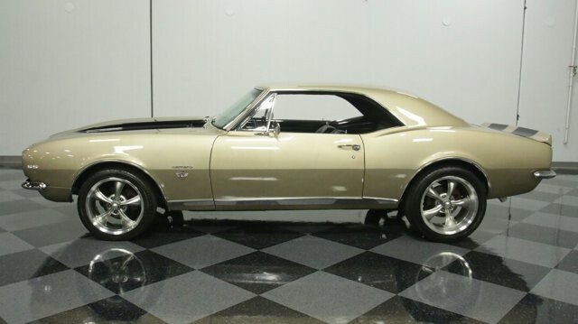 This 1967 Chevrolet Camaro is a terrific combination of vintage and new. You have the factory-correct color in a nicely detailed package. But additions like the enhanced small block, four-wheel disc brakes, five-speed stick-shift, and Bluetooth radio make this classic coupe an extra-fun driver for today. And since youll be enjoying this out on the streets, the RS/SS tribute style is the ideal upgrade for a meaner Camaro. Granada Gold is the factory-correct color, and this was given a respray later in life. So it really lets this precious metal color have an elegant glow every time you drive this in the sunshine. Chrome and brightwork also have