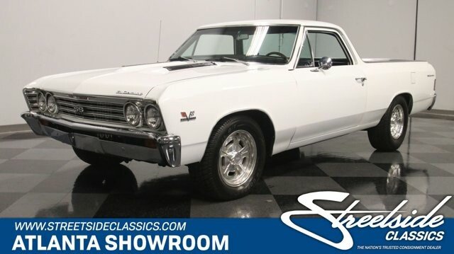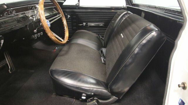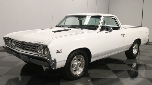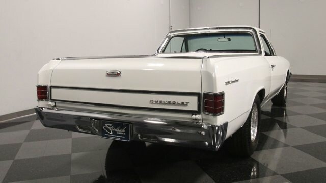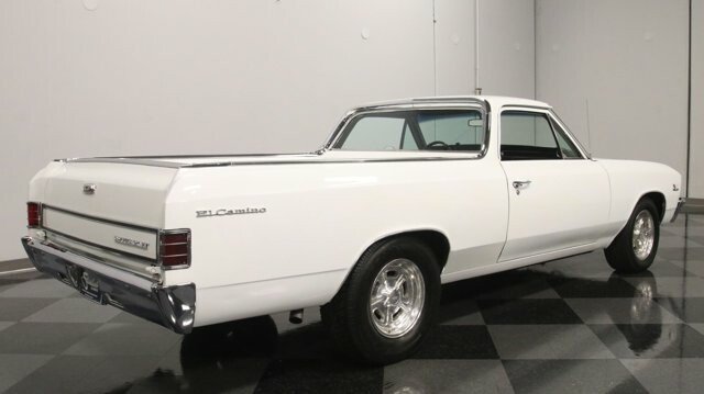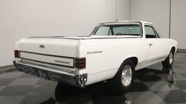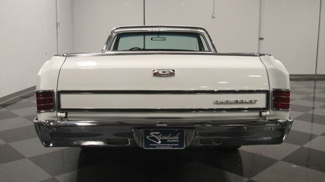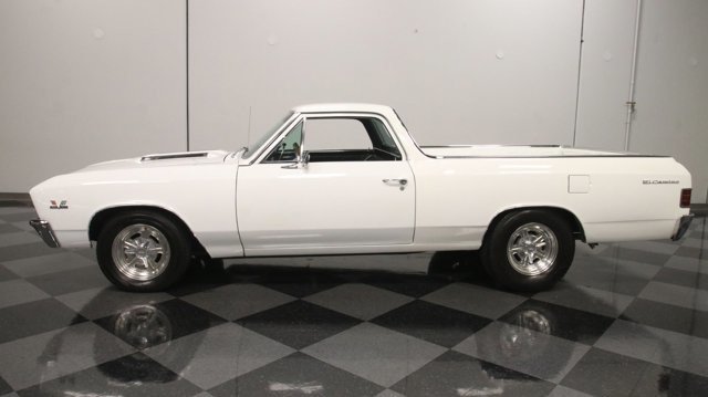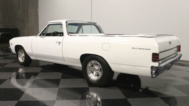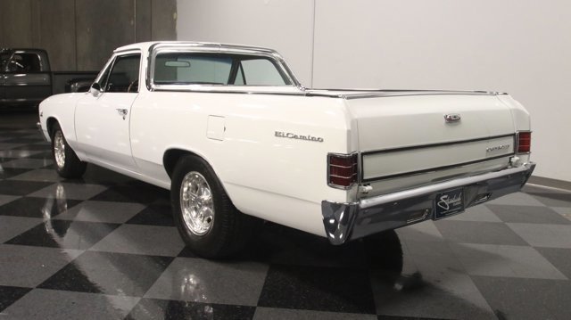 You love it when a cool classic was also made to be a cool cruiser. Thats why this 1967 Chevrolet El Camino was upgraded with big block V8 power, an overdrive transmission, a rebuilt front end, and a comfy/classic interior. Theres the right look of quality in this El Camino. The panels are good, the window seals were updated, and the unique bed looks like it hasnt seen much use over the years. The factory-correct Ermine White has the clean look of mindful care and investment over the years. It combines with the clean and complete brightwork to make for a good-looking cruiser. So you can give it all a good polish to really get some attention, but we just think it looks attractive with its bright and road-ready look today. After all, the El Camino also loves to give you some hints that its a big block Chevy. Its not trying to be a full Super Sport tribute, but it just looks great with the SS grille and vent trim hood. And those bright American Racing salt flat style wheels have a distinctly larger rear tire set for an awesome stance. Inside is a clean black interior with a smooth dash pad, good carpeting, taut door panels, bright trim, and a nice bench with comfy cloth inserts for where you sit. Plus, it likes to keep a classic style, right down to details like the working dome light and AM radio thats still cranking tunes. As a true cruiser, youll be interested in the provisions for air conditioning (the main components like the compressor are there, but it needs a belt and likely servicing.) And the feeling of a drivers classic continues with the right features focused on you. This includes a grippy wood-rimmed steering wheel, clear factory readouts, and an auxiliary gauge trio under the dash. The engine bay is stuffed with big block power. This is a later 396/402 cubic-inch V8 that has