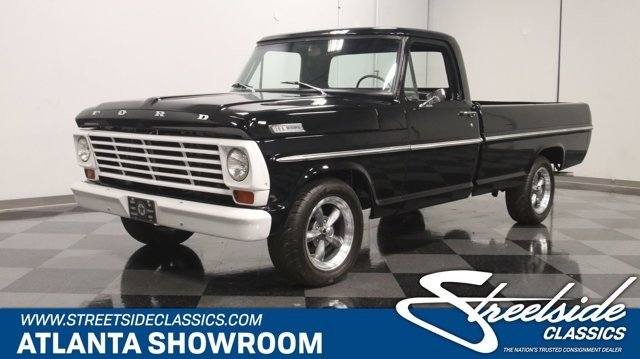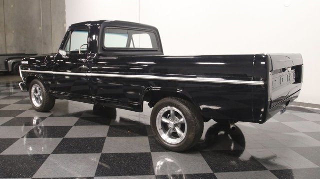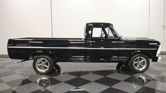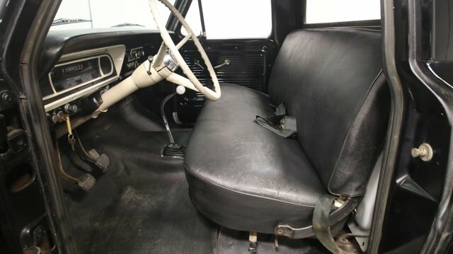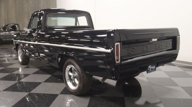 This 1967 Ford F-100 combines classic appeal, long bed utility, sporty style touches, and proper upgraded V8 power. It all makes for a cool package where an honest truck is also a cool cruiser. The trim tag tells us this was born a desirable Raven Black pickup. There was even a nice later respray that makes sure this continues to have an attractive gloss. Plus, the white grille and bumper are an attractive contrast that strikes a balance between work truck style and a hint of coordinated two-tone. It makes for an industrial-level attractiveness that feels like the theme for this F-Series. The full-length trim has a vintage appearance, and it helps highlight the good-looking sheet metal. And the upgraded 17-inch Vision wheels give this a nice sporty stance. And when its time to use the long bed for chores, theres already liner paint in the bed. The black is carried inside. The bench seat, dash, headliner, and door panels are all clean and vintage. In fact, this has a classic style right down AM radio thats there for display. Its pure old-school cool, but we also bet you can think of a few personal touches to add. We like how this also gives you a hint of white like the exterior. Its on fun features like the classic thin/grippy steering wheel and the upgraded Hurst cue ball shifter. The engine bay may just be the coolest part of the truck. It doesnt try too hard to be impressive, but its hard not to take notice of the long Cobra air grabber, finned Edelbrock valve covers, and bold blue block radiating from within the dark walls. This is an upgrade to a 351 cubic-inch Windsor V8. It has the right additions, including a Holley four-barrel carburetor, an Edelbrock Performer intake, and a rather straight set of pipes on the dual exhaust. It makes for the kind of powerhouse that you can feel the hardy muscle going down the road. In fact, the power is really in your hands thanks to the three-speed manual transmission. Plus, you can feel there have