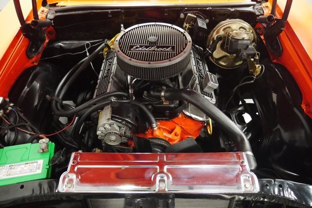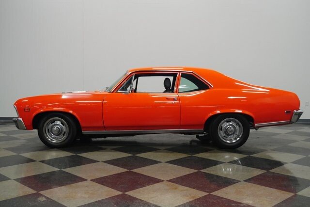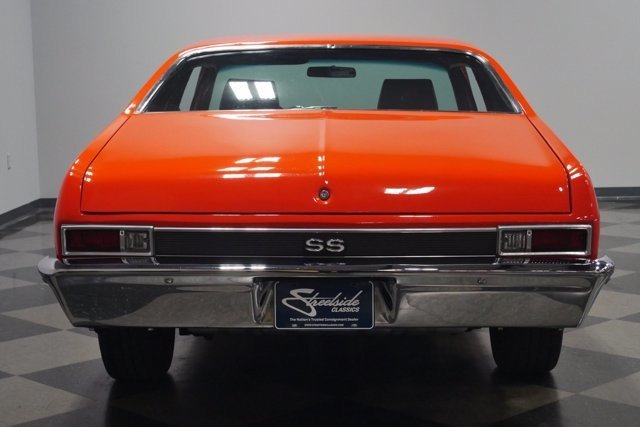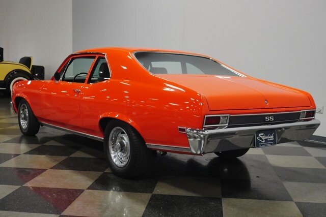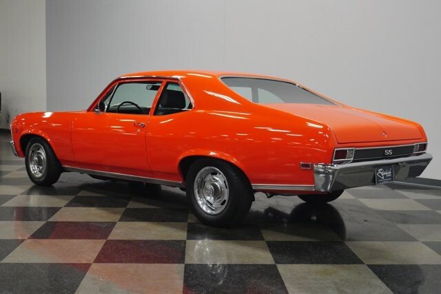 A bold style, rumbling V8 power, and the right Super Sport upgrades make this 1968 Chevrolet Nova SS tribute the kind of classic thats perfect for all-around enjoyment. And this impresses even in the details, like the bucket seat interior and suspension upgrades. We have a receipt file showing solid investment throughout this car in 2016. This includes the paint. The color looks like close kin to Chevys famous Hugger Orange, and that sets the right tone for the car. After all, you have a good gloss to the finish and bright trim that give this the right look for a classic bow tie. And the style is an attractive icon that wont make you too nervous to enjoy it to the fullest. And thats what a cruising classic is all about. After all, a Super Sport is all about being a driver, and this pays proper tribute to that with the blackout grille, blackout rear panel, ribbed rocker, hood vent trim, and 15-inch Rally wheels. Its truly attractive and truly a cruiser. The moment you see the Procar front bucket seats inside you know this was made to be a great driver. They have the kind of body-hugging bolstering you could never get in the 1960s. These seats as well as the rear bench, carpeting, door panels, and dash all have a clean and dark style of an attractive Nova. There are cool drivers details that give you upgraded features while still remaining vintage. You see it in the dual-spoke SS steering wheel, center console, and Sunpro auxiliary readouts. So while you could upgrade the AM/FM/cassette stereo to a more modern unit, it kinda already feels right in this retro-cool dash. Under the hood is a clean and mean-looking V8. This 350 cubic-inch small block is reported to have
