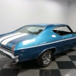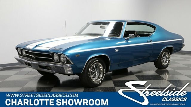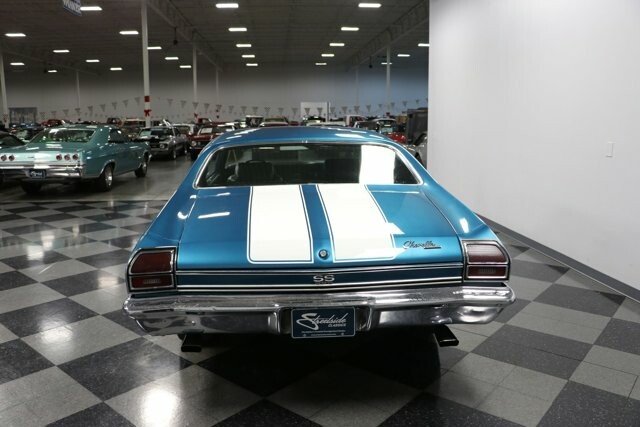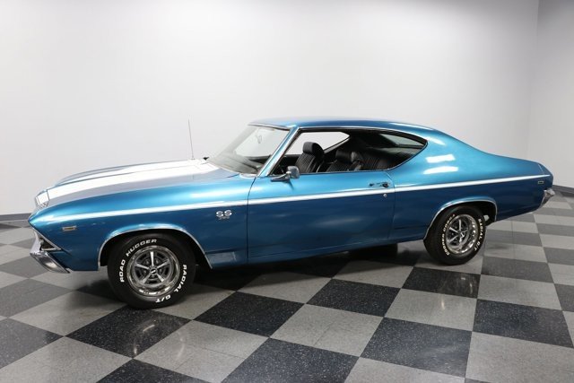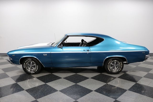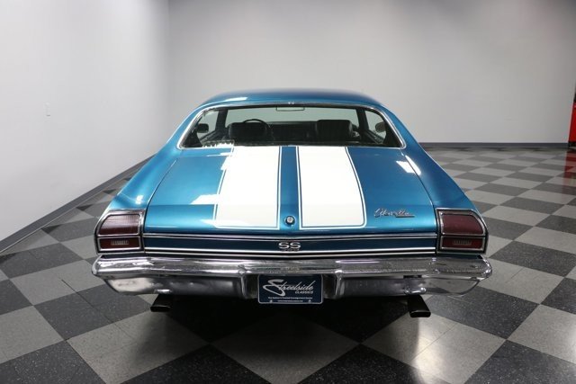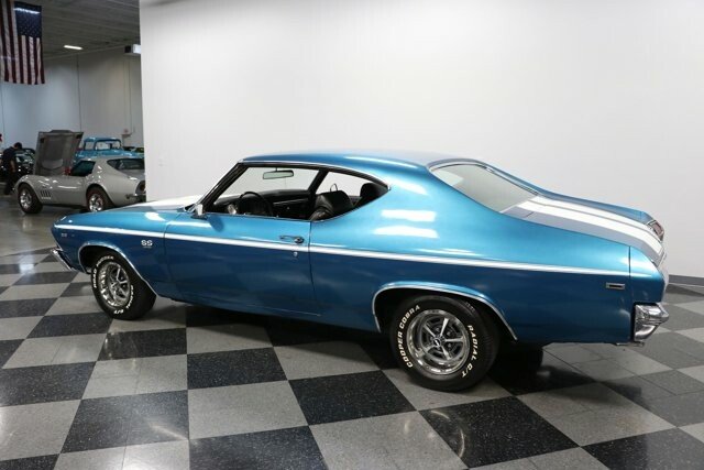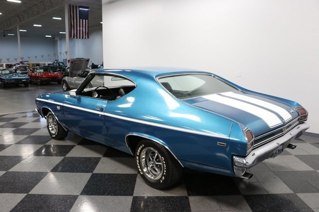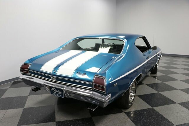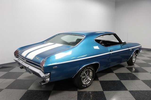 This 1969 Chevrolet Chevelle SS tribute has enhanced big block power, driver-oriented features, and a road-ready sporty style. It makes the right way to deliver the upgraded Super Sport attitude. The pillarless hardtop profile, wide four-headlight front end, form-hugging bumpers, and fastback-like style make this Chevelle coupe an icon. And we love it in LeMans Blue. After all, a name like that already gets you in the mood for performance driving. And thats exactly what this car seems to be aimed to do. The bold color loves to look vibrant in the sunlight, and you wont be afraid to take it out on any sunny day. So yes, get out there and share this one with the world. It loves to be noticed with Super Sport details like the blacked-out grille, wide dual exhaust tips, full SS badging, and mag-style wheels. Plus, they not only painted on the year-correct SS396 stripes, but they also added top racing stripes to be the boldest. The black interior has a classic and clean kind of style. So its ready to get down to hitting the road. You have factory-style driver-oriented features like the front bucket seats, a center console, the horseshoe shifter, and a dual-spoke SS steering wheel. Upgrades like a tach on the steering column and auxiliary readouts under the dash join these. So while this has