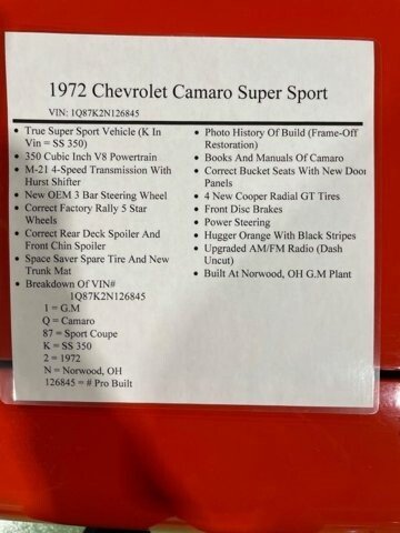 1972 Chevrolet Camaro SS PRÈS À LIVRER SOUS 3 SEMAINES CHEZ VOUS!