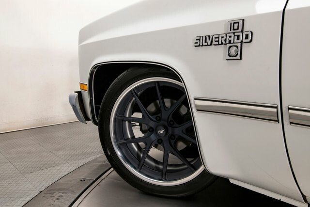 Restored Shortbed Squarebody C10 Truck 448hp 383 V8 Automatic A/C Lowered /// Fully sorted and ready to rock, this traditionally handsome C10 is the beneficiary of acute restoration that turned a solid workhouse into a boulevard superstar! That thoughtful freshening is decorated in crisp two-stage that floats clean white pigment under a glossy clearcoat shine. And niceties like polished bumpers, bright mirrors and a body-matched grille bar are highlighted by cool details like tinted glass, a Holley bed mat and fresh chrome rocker molding. Toss the hood and youll find 383 cubic inches of hot BluePrint Engines small block that twists 448 dyno-proven horsepower into 471 lb./ft. of dyno-proven torque! That mill was installed in front of a smooth 700R4 4-speed that was sourced directly from the pros at Weatherford, Texas Phoenix Transmission. That gearbox spins a familiar 12-bolt axle thats built with 3.90 gears and a posi-traction differential. A thick QA-1 sway bar leads decidedly factory chassis, which has