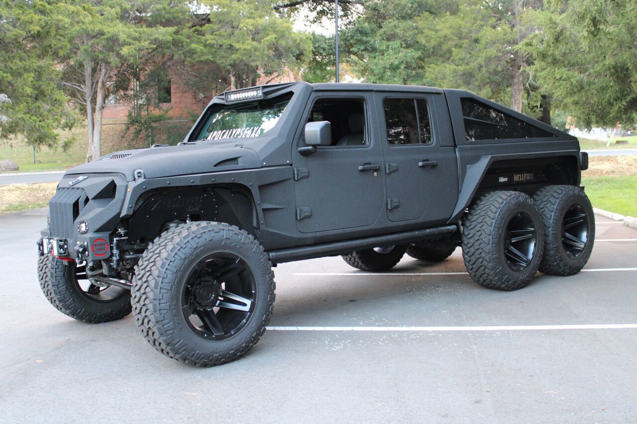 Après que Jay Leno ait conduit une conversion folle de Jeep Gladiator 6×6 sur sa chaîne YouTube pour cet pour cet import voiture usa Jeep Gladiator en août dernier, j’avais besoin d’en savoir plus. Estimant qu’il s’agirait probablement d’une construction unique servant principalement d’effort de marketing, j’ai contacté Apocalypse 6×6 et j’ai découvert que la boutique basée en Floride produisait constamment ces monstres pour des clients du monde entier. De plus, Leno n’a même pas eu l’expérience Hellcat suralimentée complète, au lieu de cela, il ne conduisait que la version “Hellfire” à aspiration naturelle “régulière” échangée avec le LS3.