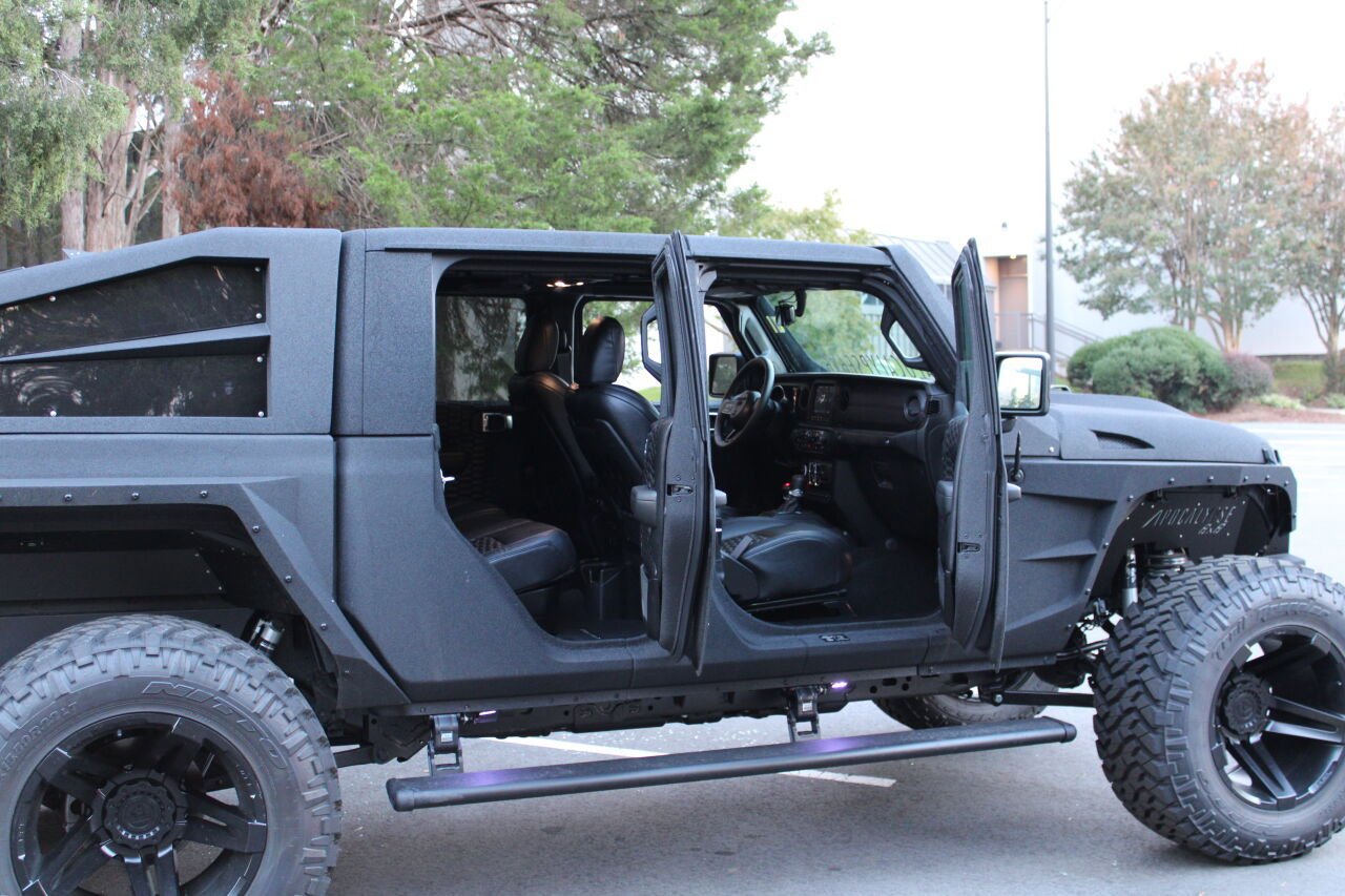 Fabriqué sur commande sur la base d’un Jeep Gladiator qui reçoit une véritable conversion à six roues motrices, soit le groupe motopropulseur Hellcat ou Corvette, et une longue liste d’autres touches personnalisées comme un intérieur en cuir marin et même une caméra thermique à détection de zombies, le Apocalypse 6×6 est certainement à la hauteur de son surnom agressif. Heureux de prouver le potentiel de la construction, le fondateur et propriétaire d’Apocalypse 6×6, Joe Gattas, m’a invité à Fort Lauderdale, en Floride, pour visiter ses installations et prendre le temps de s’asseoir dans l’une des constructions Jeep les plus folles que le monde ait jamais vues.